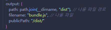 우리의 index.html 에서 script로 참조하고 있는 bundle에 들어갈 경로를 적용해주어야 합니다.