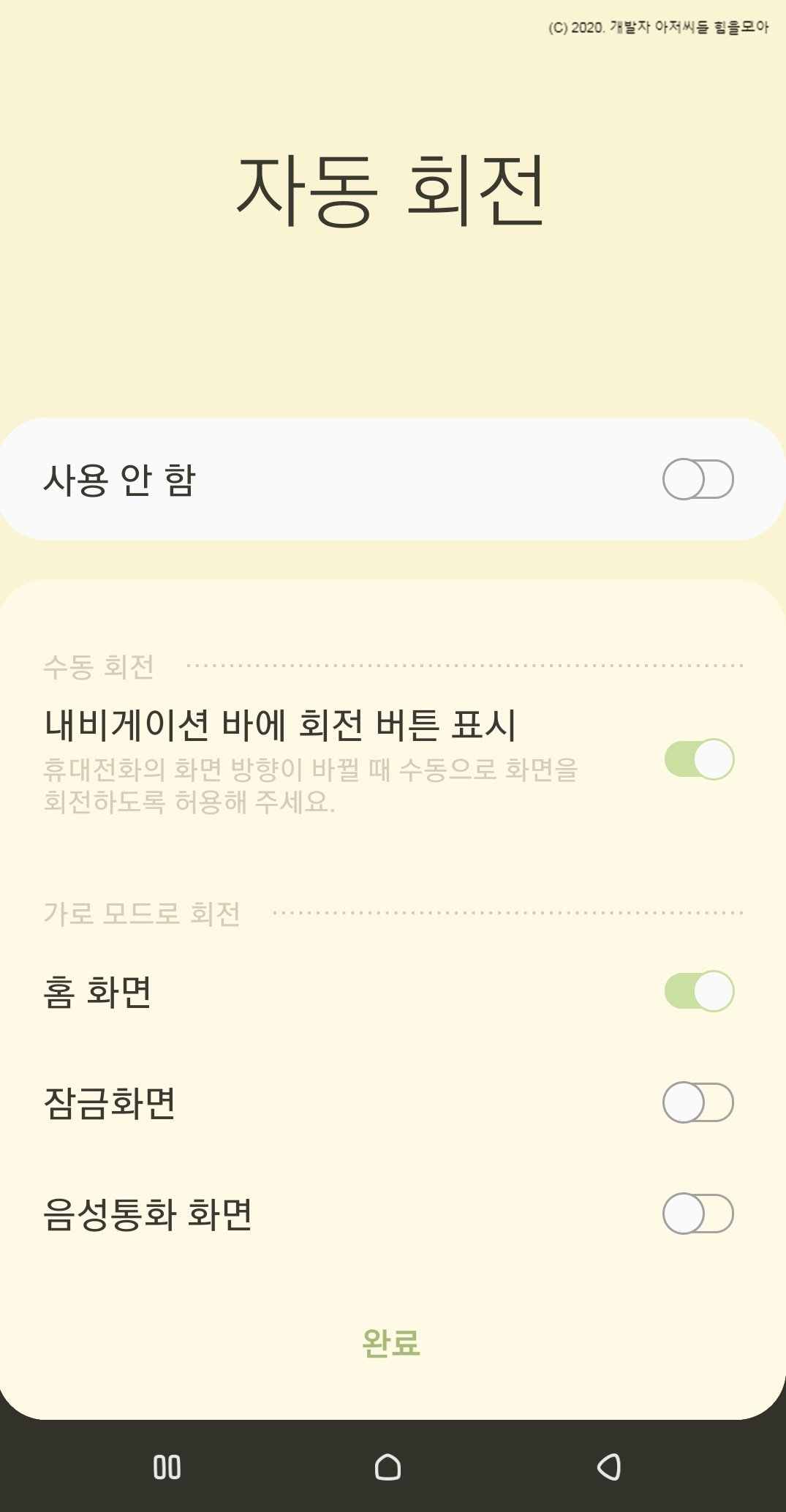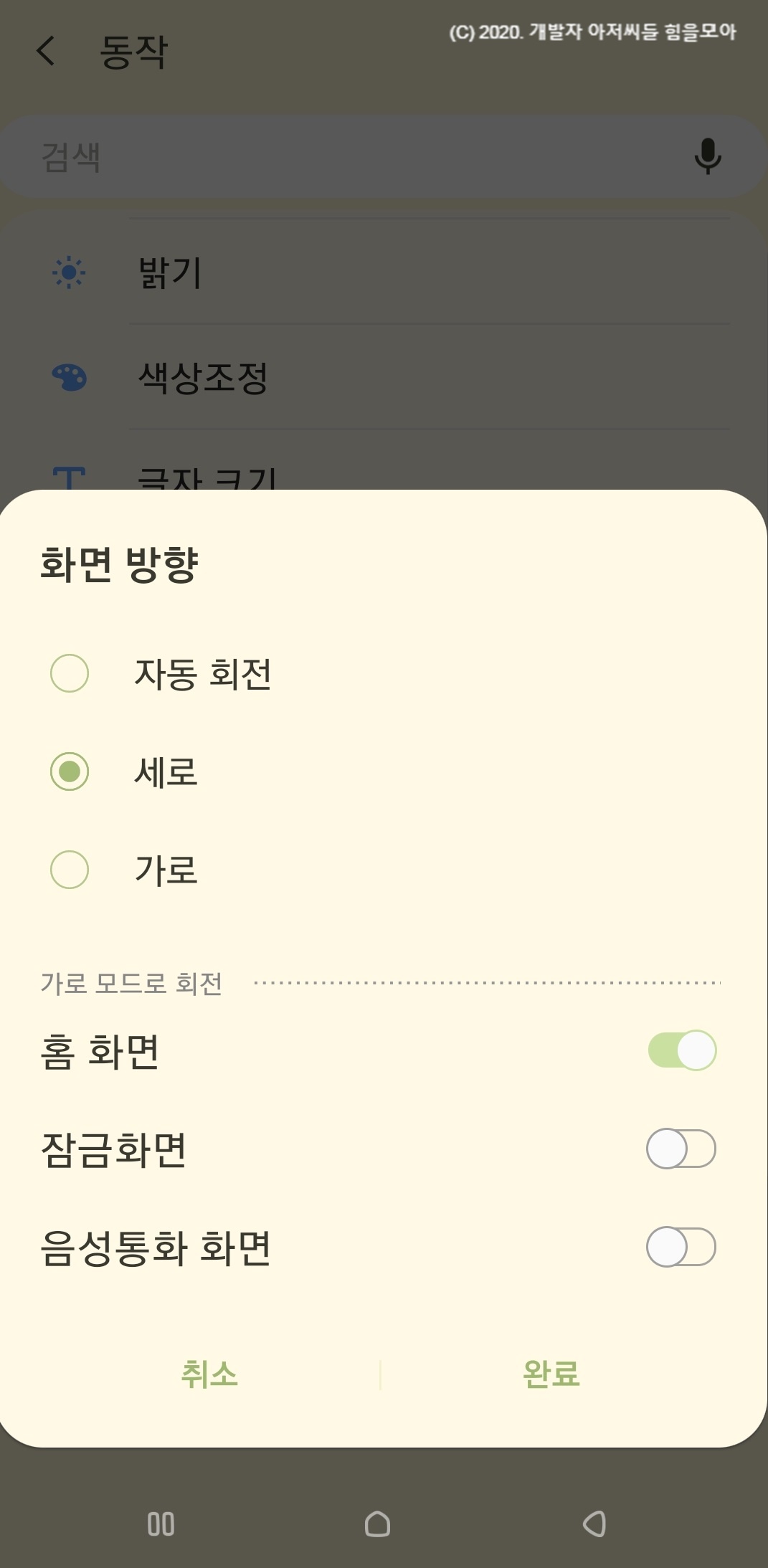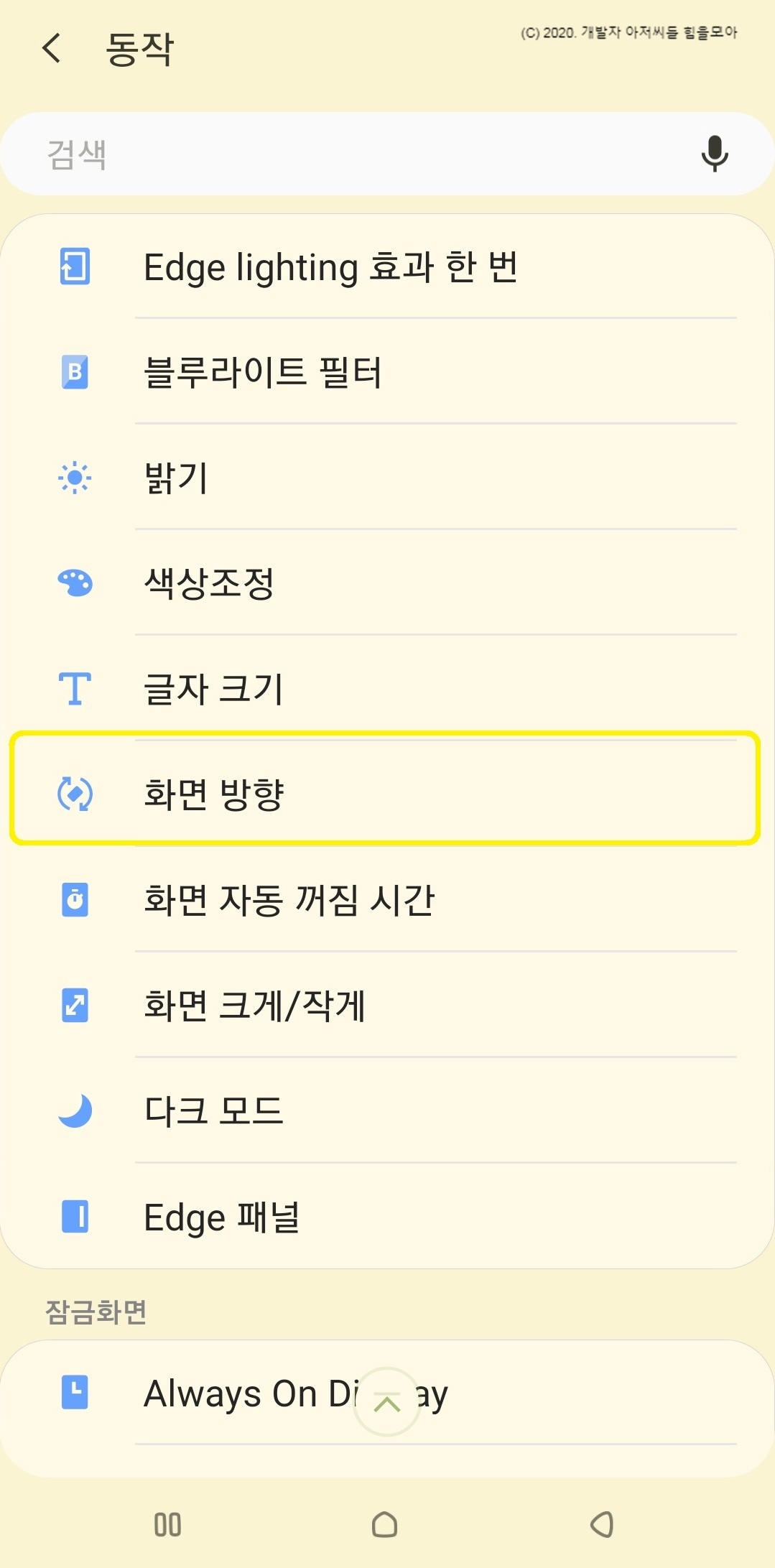 2-1. 화면자동 회전 메뉴가 있을 때.