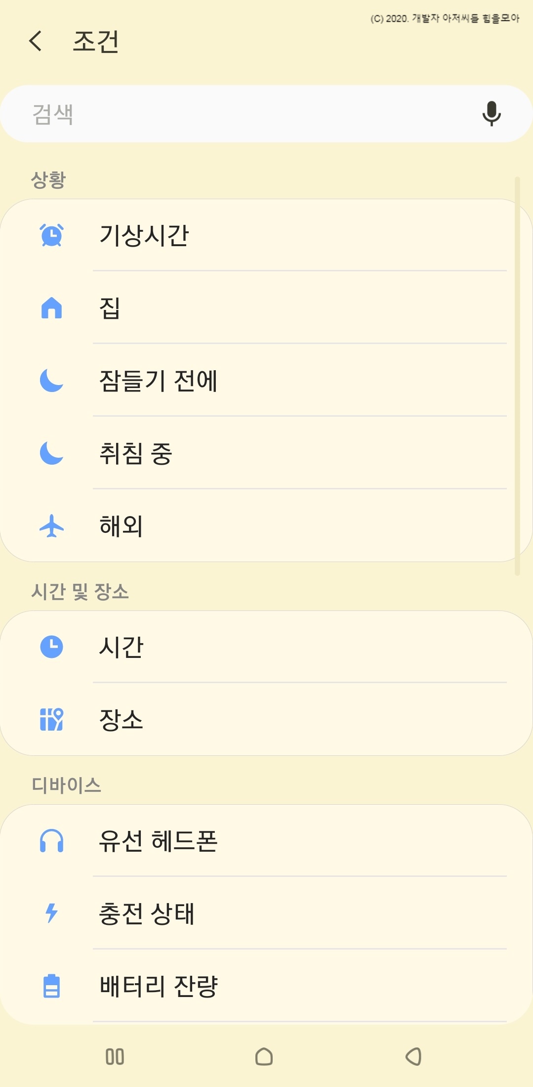참고로 저는 집에 들어오면 WIFI가 켜지기, 잠 자는 시간대에는 무음모드로 바꾸기 등을 이용하고 있습니다. 😄