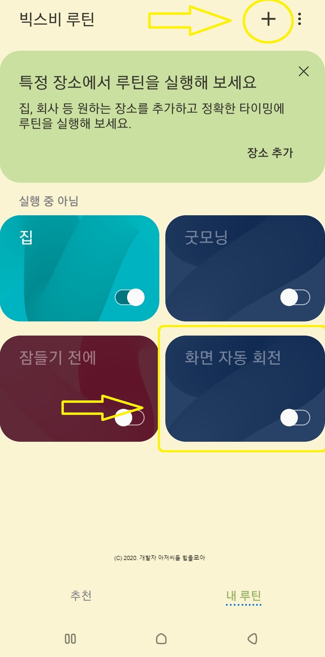 갤럭시 빅스비 루틴 을 이용하면 화면 고정을 자동으로 조절할 수 있습니다!