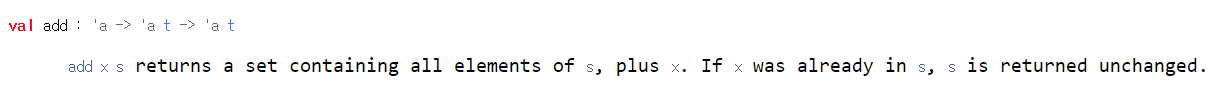 let mySet = BatSet.add 2 (Batset.singleton 1) in (* mySet = {1,2} *)