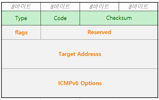 ICMPv6 Options 에는 IP주소에 해당하는 MAC 주소가 들어갑니다. (혹은 다른 기타 옵션)