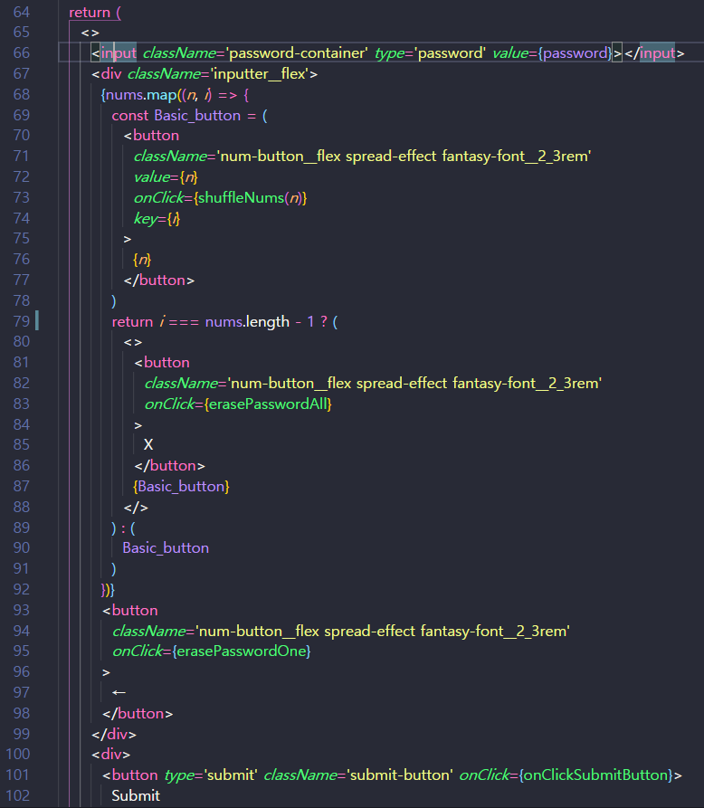 nums 배열에 있는 각 숫자들에 해당하는 button 을 생성합니다. (React의 장점... 너무 편해요😋)