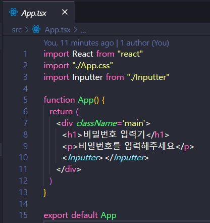 Inputter 컴퍼넌트를 App 에서 사용할 수 있게 export 해줍니다.