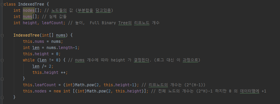 인덱스 트리는 왠만하면 Full Binary Tree로 구성하는게 좋습니다! (방법은 밑에 코드로 설명하겠습니다)