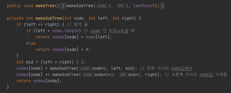 nodes[] 를 이용하여 부분합을 구해주는 함수입니다.