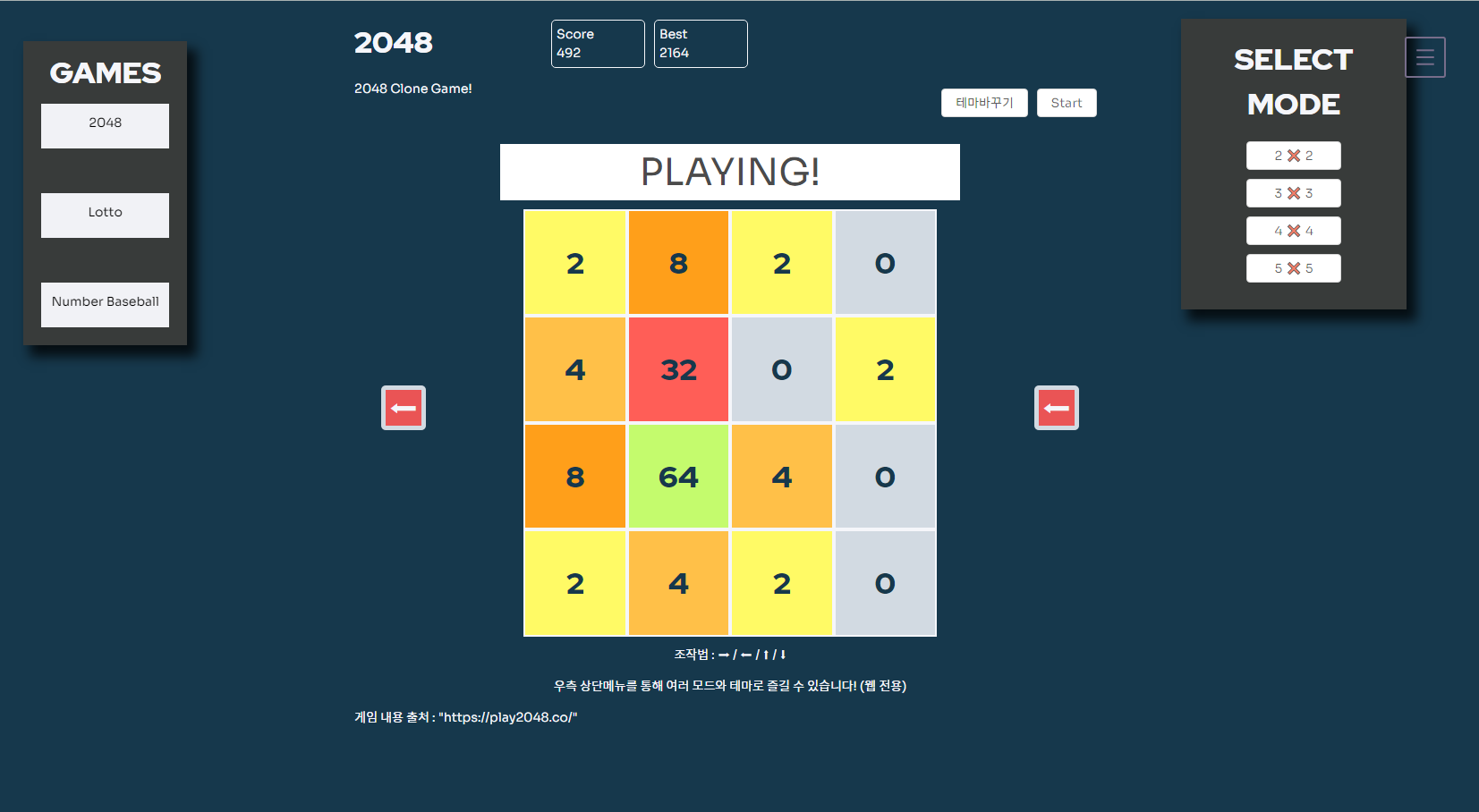 <footer>게임 내용 출처 : "https://play2048.co/"</footer>