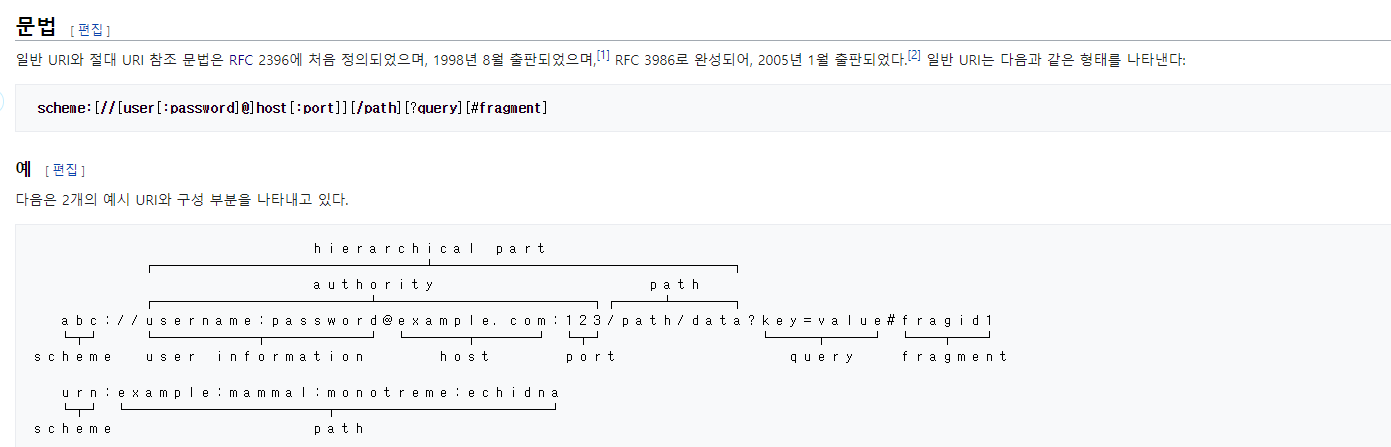 URI 는 특정 문법을 가지고 있어서 그 형식을 주로 따릅니다.