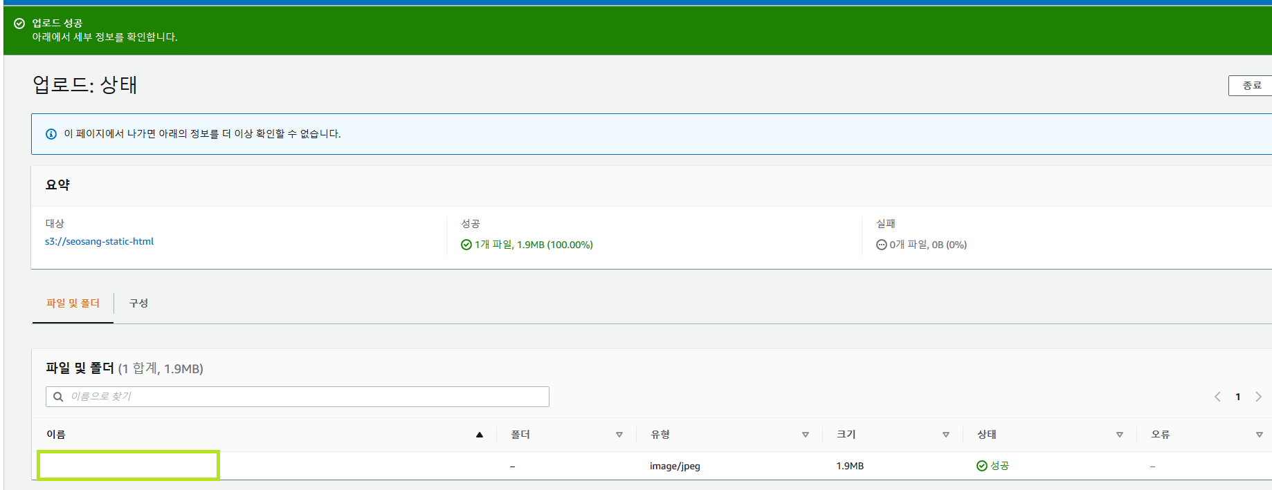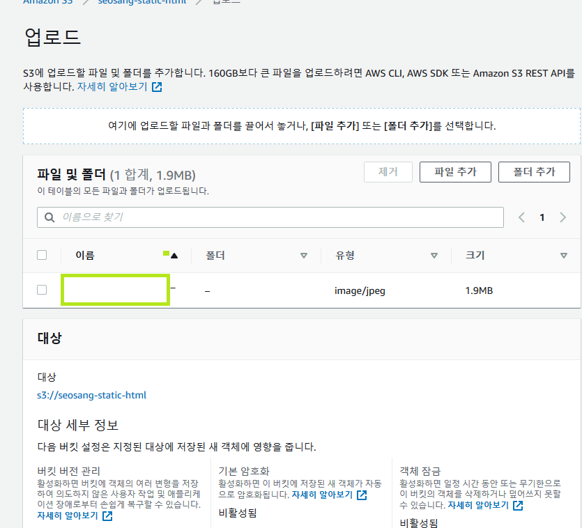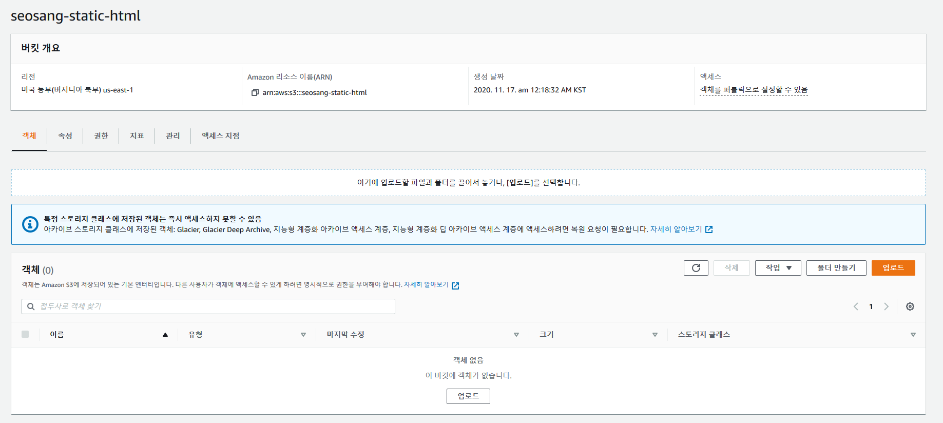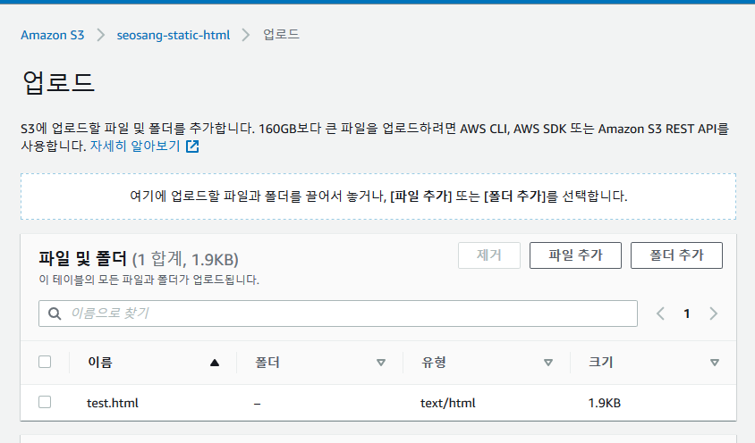 아까 이미지를 업로드했던 것처럼 방금 만든 html 파일을 S3 버킷에 업로드해주세요.