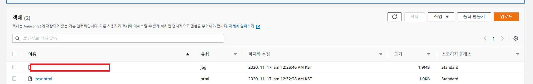 test.html 로 들어가서 사진과 마찬가지로 접근권한을 퍼블릭으로 설정을 해줍니다.
