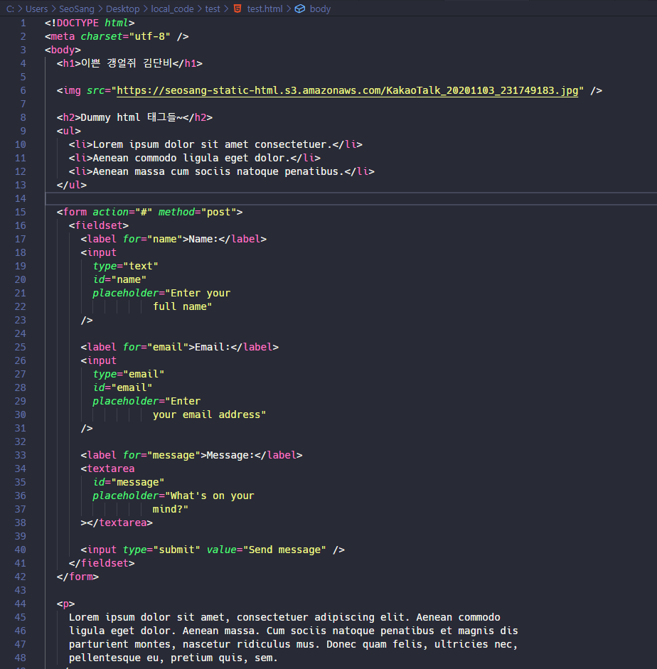 아무 html 파일이나 생성해줍니다. (내용은 자유롭게 작성)😀