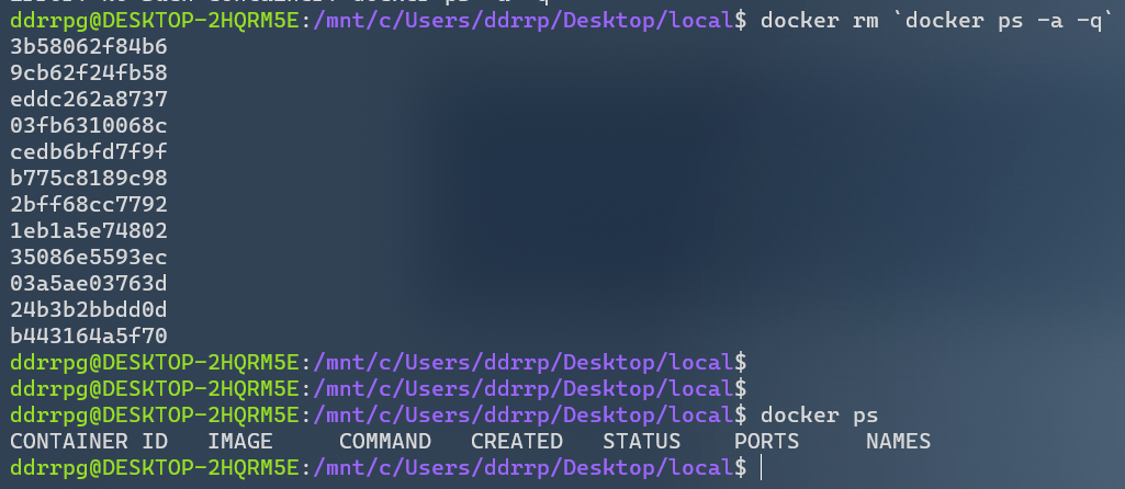 docker rm 'docker ps -a -q' -