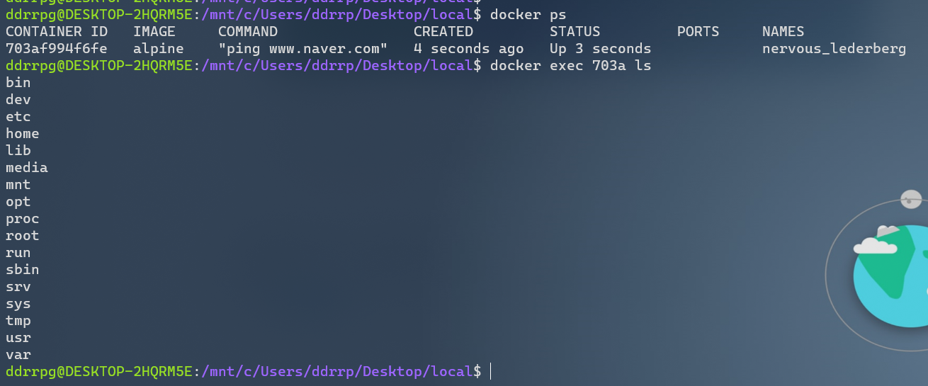 실행중인 컨테이너에 명령어 전달
