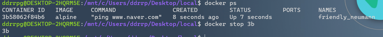 => 컨테이너 아이디가 나온다