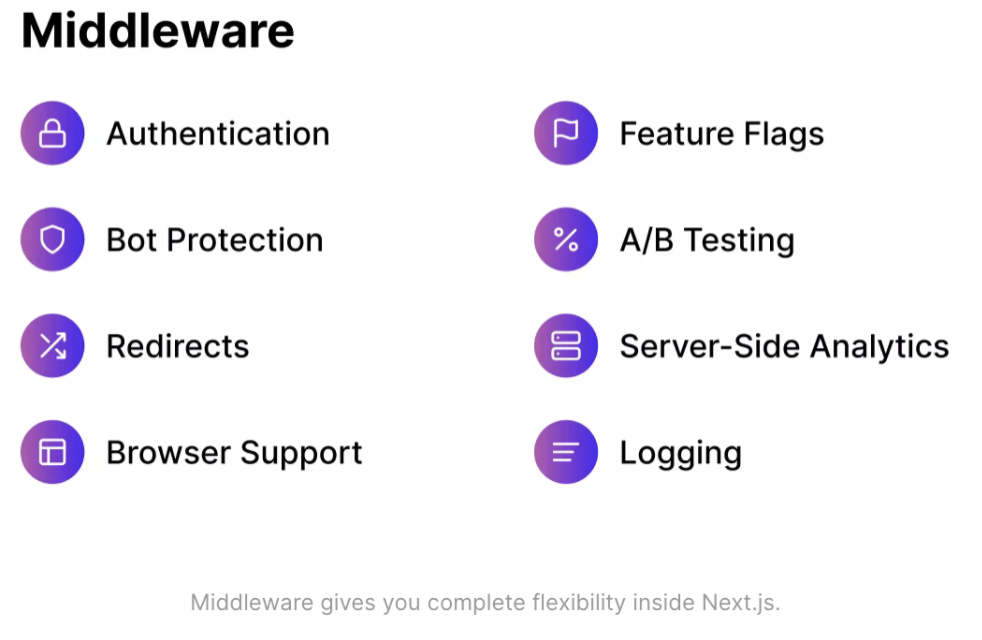 이번 업데이트는 'rust 컴파일러로 변경' , '리액트 서버컴포넌트' 등 이전 버전들보다 더 혁신적인 기능들이 많은 것으로 보이는데요, 그 중에 눈에 띄는 부분인 미들웨어 부분을 소개드리고자 합니다.