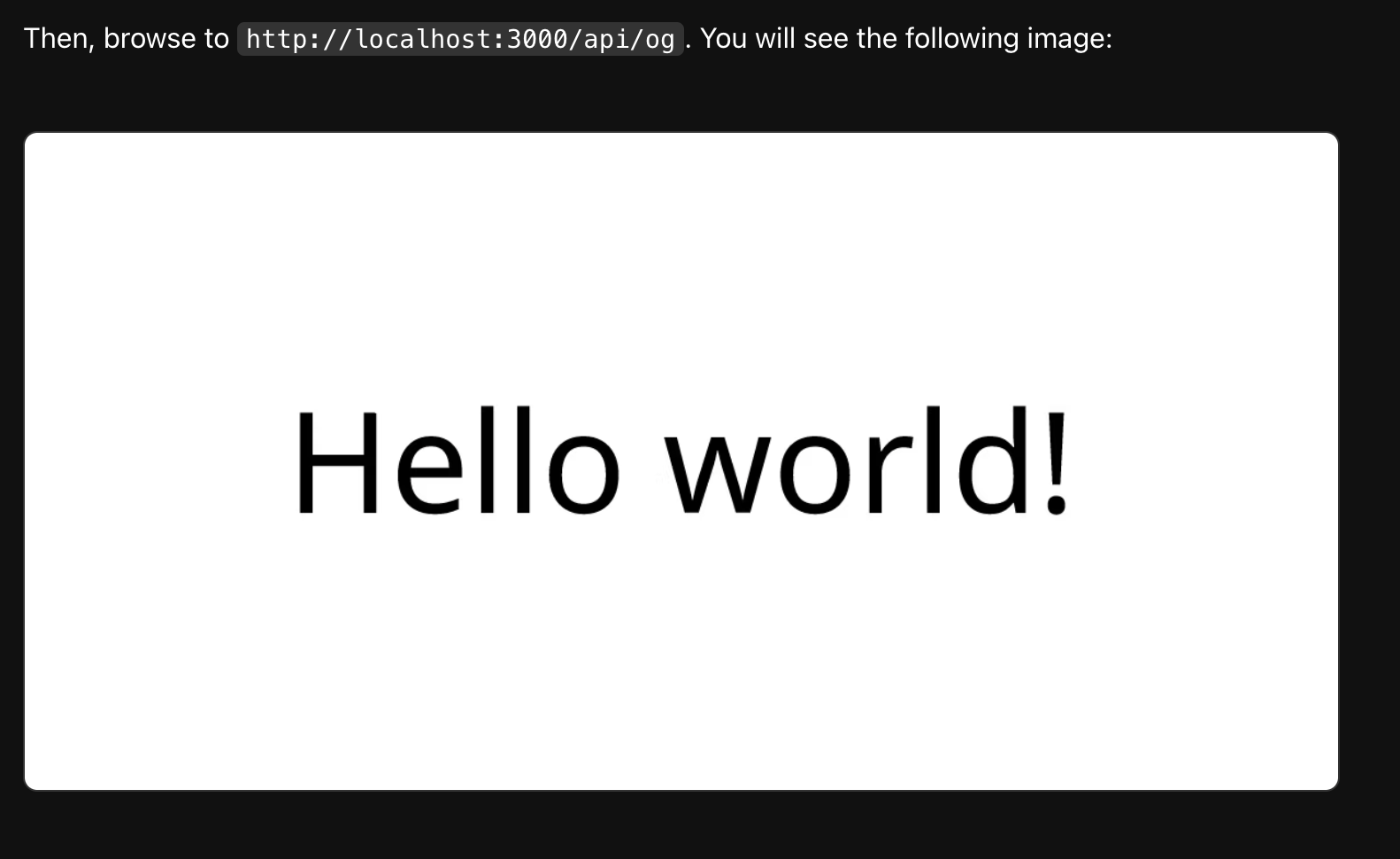 next js 13버전부터는 이 OG 태그용 이미지 generation도 공식적으로 지원하나봅니다. vercel에서 만든 @vercel/og 라는 모듈을 사용하면 되는데요. 아래와 같은 예시를 들고 있습니다.