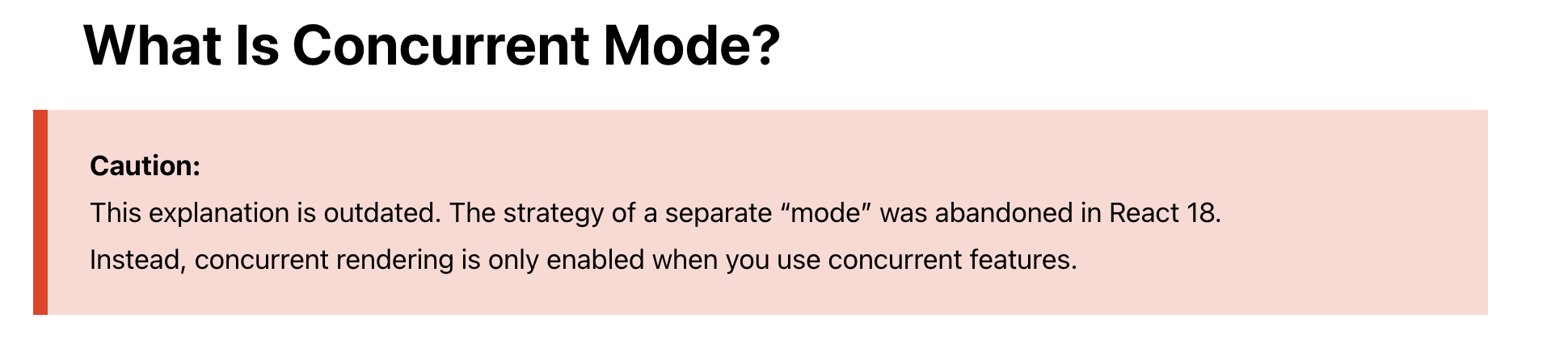 사실 Concurrent mode는 이제 deprecated 된 명명 방식입니다. v18 부터 정식도입된 Concurrent feature는 이제 특별한 mode가 아니라, 하나의 정식화된 방식으로 자리잡을 예정이라는 뜻이죠.
