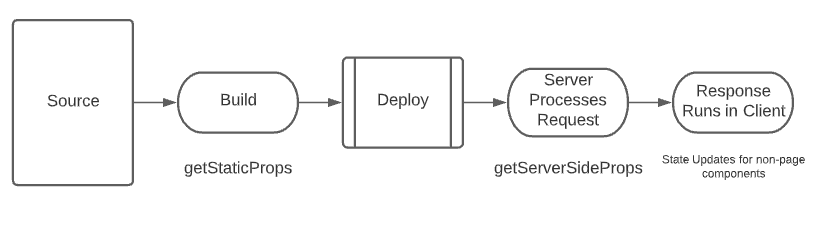 Next JS에서도 이러한 과정을 손쉽게 사용할 수 있도록 함수 형태로 제공합니다. 바로 getStaticProps 를 이용해서인데요, 소스 빌드 타임에 리소스를 미리 렌더링 해두고, 이후 요청부터는 캐싱된 렌더링 결과들이 제공됩니다! 제가 앞서 예시로 든 블로그 페이지라던가, 도움말 페이지, 마케팅용 페이지 등등에서 주로 이러한 방식이 이용됩니다.