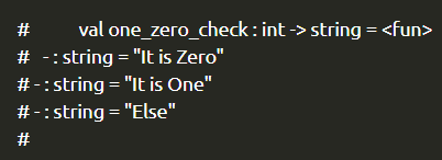 그리고 | 이후에 0 과 1을 통해 조건을 정해준 순간 one_zero_check 이라는 fucntion은 int값만을 변수로 받는 함수가 됩니다. ( int1 자리에 정수를 제외한 다른값으로 하면 에러가 뜬다는 말입니다! ex) one_zero_check "one" => Error 발생)