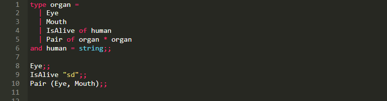 예를들어 앞으로 Eye나 Mouth라는 것이 나오면 이제 Ocaml 에서는 organ type 으로 간주한다.