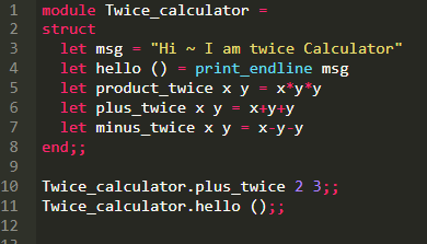 예를들어 test.ml 이라는 파일을 작성하고 있다면 test라는 모듈로서 사용이 가능한 것입니다.