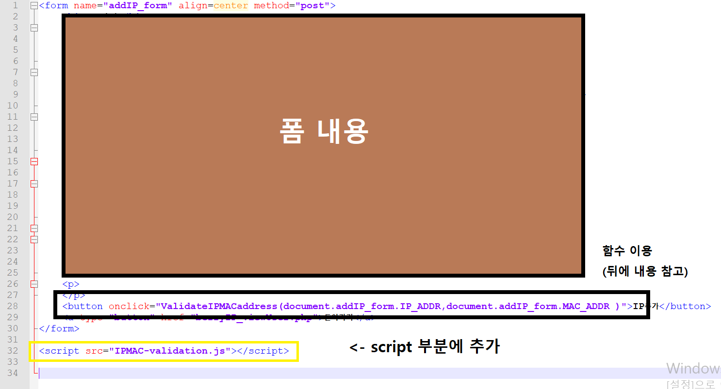 (참고로 formName.IP_ADDR 의 IP_ADDR 은 form에서의 IP주소를 받는 input 태그의 name이다.)