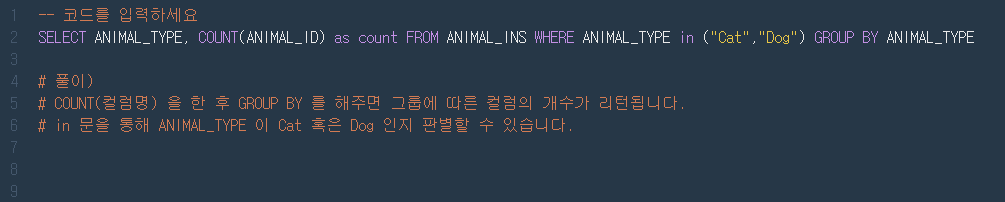 | [프로그래머스💯] 코딩테스트 연습 > GROUP BY > 동명 동물 수 찾기 / HAVING 절 / COUNT 문 (0) | 2019.10.15 |