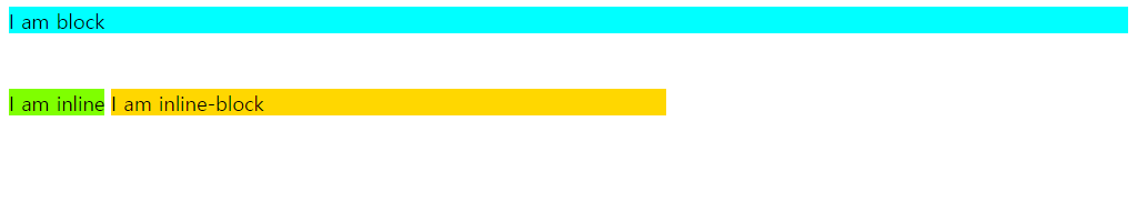 컨텐츠를 딱 감쌀정도의 크기만 갖게됩니다. block태그와 다르게 줄바꿈이 되지 않고, 반드시 컨텐츠를 감싸게 되고, 크기를 변화시킬 수 없습니다. 예시 css에서도 width를 임의로 500px 로 바꾸어줬지만 크기는 여전히 글의 길이 만큼입니다.